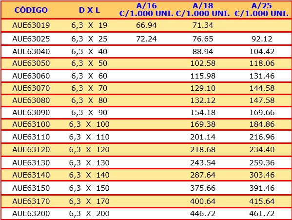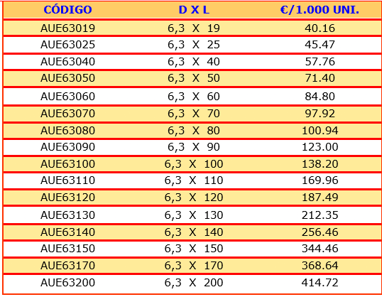 Aço temperado igual ou similar a DIN7976 zincado interiores.